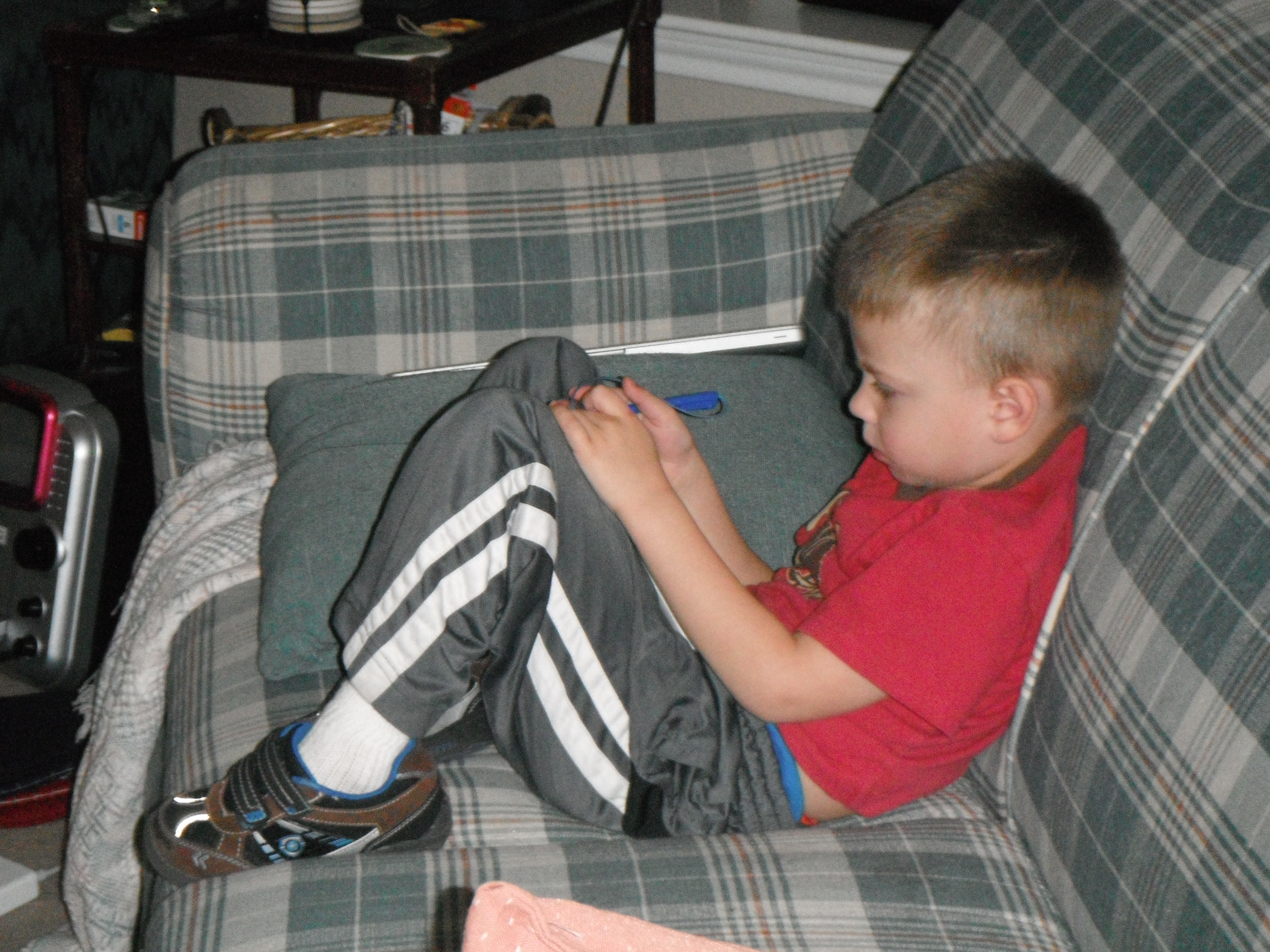 Busy busy day! Between classes, computer problems, and visitors, I did not have much time to complete anything. As soon as I got home, I started fixing dinner before our guest arrived. It would have been the perfect excuse to skip walking tonight. I almost did, but after dinner I realized I had 15 minutes left before we left for church. If my husband would do the dishes…there would be just enough time to walk half a mile before church. The picture I took was of my son playing a game on the couch as I walked around the kitchen cooking dinner. I was determined to get a picture while walking. It is a good thing I took that picture because it was after dark when I finally went for that walk. It was only .64 of a mile, but I consider it a success because I went out and did it instead of giving in to the excuse. Tomorrow, I will stop making excuses about getting up early and read those Bible chapters I was supposed to read earlier this week.